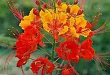 洋金凤 Sw.)是豆科、云实属植物。枝光滑,绿色或粉绿色,散生疏刺。二回羽状复叶;羽片4-8对,对生;小叶7-11对,长圆形或倒卵形,顶端凹缺;小叶柄短。总状花序近伞房状,顶生或腋生,…全部>>