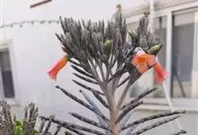 伽蓝菜是景天科伽蓝菜属植物。多年生草本,高20-100厘米。叶对生,中部叶羽状深裂,全长8-15厘米,裂片线形或线状披针形。聚伞花序排列圆锥状,长10-30厘米;苞片线形。花期3月。…全部>>
