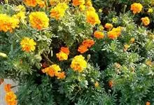 万寿菊是菊科万寿菊属一年生草本植物,别名孔雀菊、缎子花、臭菊花、西番菊、红黄草、小万寿菊、臭芙蓉、孔雀草。万寿菊茎近基部分枝。叶羽状分裂,长5-10厘米,宽4-8厘米,裂片长椭圆形或披针形,具锐齿,…全部>>