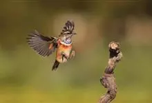 蓝点颏亦称“蓝喉歌鸲”,通称蓝靛颏儿。身体大小和麻雀相似,体长12-13厘米,体重17-18克。头部、上体主要为土褐色。眉纹白色。尾羽黑褐色,基部栗红色。颏部、喉部辉蓝色,下面有黑色横纹。下体白色。…全部>>