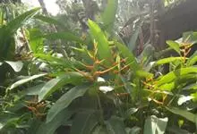 金嘴蝎尾蕉:芭蕉科,蝎尾蕉属多年生草本植物。株高可达6米。叶片长圆形,叶面绿色,叶背亮紫色;顶生花序,直立,薄被短柔毛;苞片绿色,开放时突露,花被片红色,顶端绿色,狭圆柱形,果三棱形,灰蓝色,有种子…全部>>