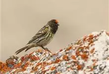 金额丝雀:为雀科丝雀属的鸟类。体重10-14克,体长109-131毫米。是一种体型较小的褐色斑驳的雀鸟。头近黑,额至顶冠有鲜红色块斑。雄雌同色,体羽在繁殖期更为亮丽。幼鸟似成鸟但头色较淡,…全部>>