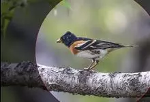 燕雀属小型鸟类,体长14-17厘米。嘴粗壮而尖,呈圆锥状。雄鸟从头至背辉黑色,背具黄褐色羽缘。腰白色,颏、喉、胸橙黄色,腹至尾下覆羽白色,两胁淡棕色而具黑色斑点。两翅和尾黑色,翅上具白斑。…全部>>