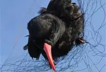 红嘴山鸦,是脊索动物门鸟纲雀形目鸦科鸟类。红嘴山鸦的成鸟通体羽毛纯黑色具有蓝色金属光泽,翼和尾泛有蓝绿色金属光泽;虹膜暗褐色,喙较为尖细,并且呈镰状下弯,喙和脚朱红色。…全部>>