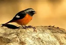 燕雀属小型鸟类,体长14-17厘米。嘴粗壮而尖,呈圆锥状。雄鸟从头至背辉黑色,背具黄褐色羽缘。腰白色,颏、喉、胸橙黄色,腹至尾下覆羽白色,两胁淡棕色而具黑色斑点。两翅和尾黑色,翅上具白斑。…全部>>