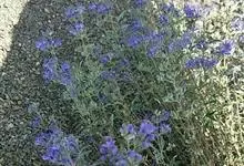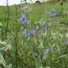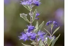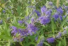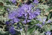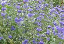 蒙古莸:为唇形科莸属落叶小灌木。常自基部即分枝,嫩枝紫褐色,圆柱形,有毛,老枝毛渐脱落。叶片厚纸质,线状披针形或线状长圆形,背面密生灰白色绒毛。聚伞花序腋生,无苞片和小苞片,花萼钟状,花冠蓝紫色。…全部>>