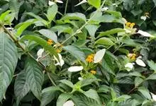 白纸扇是茜草科玉叶金花属,藤状攀援灌木,枝和小枝褐色,叶薄纸质,披针状椭圆形,两面有稀疏柔毛。花序顶生,聚伞花序,花黄色。花期5~1 0月。有些花的一枚萼片扩大成叶状,白色。全部>>
