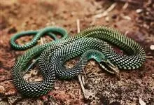 金花蛇是有鳞目游蛇科金花蛇属爬行动物,别名美丽金花蛇。头较长,与颈区分明显;吻部扁,吻端钝圆;眼大,瞳孔圆形;背鳞平滑或略起棱;腹鳞两侧明显地翘向背面,呈棱角状;侧棱后缘有缺刻,…全部>>