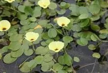 水金英 Buchenau)是黄花蔺科水金英属植物,多年生浮叶草本。株高1-5厘米。茎圆柱形,直径约5毫米。叶具长柄,圆形至阔卵圆形。伞形花序;小花具长柄,罂粟状,直径6厘米,淡黄色艳,…全部>>