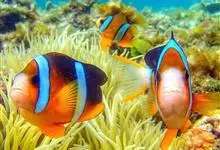 小丑鱼是鲈形目雀鲷科小丑鱼属鱼类的统称。体长仅5—6厘米。身体色彩艳丽,多为红色、橘红色;除透明的胸鳍与软背鳍鳍条外部,其余鳍均为黑色。体形怪异,体色多变,通常体侧有白色条纹。…全部>>
