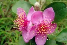 红果仔是桃金娘科番樱桃属的灌木或小乔木。株高可达5米,全株无毛;枝条纤细,稍下垂;叶对生,卵形或卵状披针形,先端渐尖或急尖,基部圆或微心形;花白色,单生或数朵呈聚伞状生于叶腋,…全部>>