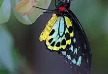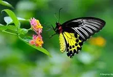 金裳凤蝶是凤蝶科、裳凤蝶属的动物。金裳凤蝶身体呈黑色,头、颈和胸侧有红毛,腹部有黑黄两色相间条纹,雄蝶前翅黑色,具黑天鹅绒光泽,各脉两侧灰白色,后翅金黄色,各室外缘有等腰三角形黑斑1枚,斑内侧有晕,…全部>>