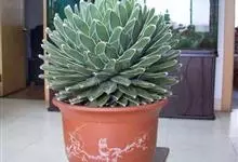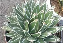 皇后龙舌兰是天门冬科、龙舌兰属多年生草本多浆植物。无主茎,叶丛生,莲座状,株幅40厘米。叶较多,先端较细,三棱形,腹面扁平,背面圆形呈微龙骨凸起,长10-30厘米,宽2.5-7.5厘米,厚肉质硬,…全部>>