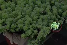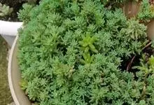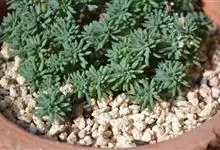 薄雪万年草别名矶小松,景天科景天属多年生草本植物,其细小的蓝绿色棒状叶片环绕生长于茎端,茎匍匐生长接触地面易着生不定根,整片生长郁郁葱葱犹如蓝色地毯,绿化效果极为秀美。原产西班牙,…全部>>