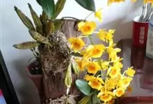 束花石斛是兰科石斛属植物。茎粗厚,肉质,下垂或弯垂,圆柱形,不分枝,具多节。叶二列,互生于整个茎上,纸质,长圆状披针形。伞状花序近无花序柄,每2-6花为一束,侧生于具叶的茎上部;花黄色,…全部>>