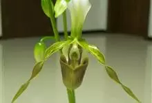 兜兰是兰科兜兰属的多年生草本植物。根茎粗状,直径3~4毫米,有很多须根;叶基生,叶片肉质增厚,排成紧密2列,叶片呈长圆形,表面有极短柔毛;总状花序,粉白色,花葶直立或倾斜,深绿色或褐色,花瓣大,呈唇形,…全部>>