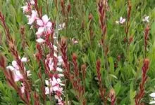 山桃草是柳叶菜科、山桃草属植物。多年生宿根草本。高60-100厘米,叶无柄,椭圆状披针形或倒披针形,花期晚春至初秋;多花型,花蕾白色略带粉红,初花白色,谢花时浅粉红。花紫红色,成密生的穗状花序,…全部>>
