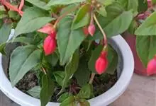 倒挂金钟是柳叶菜科倒挂金钟属亚灌木植物。茎直立,多分枝;幼枝带红色,被短柔毛与腺毛,老时渐无毛;叶对生,卵形或窄卵形,脉常带红色;常带红色,被短柔毛与腺毛;花筒红色,筒状钟形,…全部>>