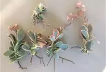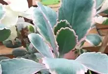 唐印为景天科伽蓝菜属的多年生肉质草本植物。植株中型,株高50厘米,宽20厘米,多分枝;叶片肉质,对生,卵形,全缘,先端钝圆,叶片淡绿色至灰绿色,表面被有厚厚的白粉,光照充足时,叶缘呈红色;圆锥花序,…全部>>