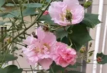 木芙蓉,锦葵科木槿属落叶灌木或小乔木。小枝上有细绒毛;叶片为卵状心形,托叶为披针形,常早落;花单生,花萼为钟形,花冠初为白色或淡红色,后逐渐变为深红色;果实为扁球形,有淡黄色的毛附着。花期8到10月。…全部>>