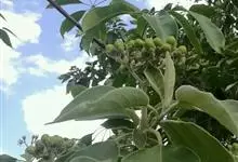 假烟叶树是茄科、茄属植物。小乔木,高1.5-10米,小枝密被白色具柄头状簇绒毛。叶大而厚,卵状长圆形,长10-29厘米,宽4-12厘米,先端短渐尖,基部阔楔形或钝,叶柄粗壮,长约1.5 -5.5厘米,…全部>>