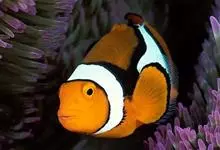 小丑鱼是鲈形目雀鲷科小丑鱼属鱼类的统称。体长仅5—6厘米。身体色彩艳丽,多为红色、橘红色;除透明的胸鳍与软背鳍鳍条外部,其余鳍均为黑色。体形怪异,体色多变,通常体侧有白色条纹。…全部>>