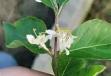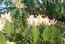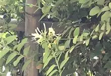 山银花在华南地区野外山林生长。木质藤本,长2~5m。树皮黄褐色渐次变为白色,嫩时有短柔毛。叶对生,卵圆形至椭圆形,长4~8cm,宽3.5~5cm,上面绿色,主脉上有短疏毛,下面带灰白色,密生白色短柔…全部>>