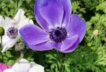 欧洲银莲花:是毛茛科、银莲花属的多年生草本植物。株高25-65厘米,具根状茎。叶为根出叶,3裂,成掌状深裂,具长柄。花茎自叶丛中抽出,花单生与茎顶,花色有白、红、粉、蓝紫色及复色等,花直径4-10厘…全部>>