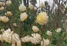 结香是瑞香科结香属落叶灌木。又名岩泽兰、三桠皮、三叉树、蒙花、山棉皮等。高约0.7-1.5米,小枝粗壮,褐色,常作三叉分枝,幼枝常被短柔毛;叶在花前凋落,长圆形,披针形至倒披针形,先端短尖,…全部>>