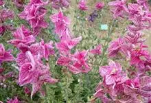 彩苞鼠尾草为唇形科、鼠尾草属一年生草本,株型直立,叶对生长椭圆形,色灰绿,叶表有凹凸状织纹,有香味,及具观尝性与食用性;花朵有纸质苞片环绕,粉红至浅蓝花有深色条纹;花期夏季。花可拿来泡茶,散发清香味道,…全部>>