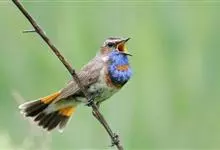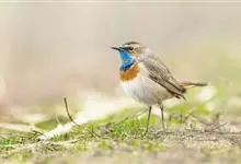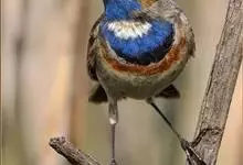 蓝点颏亦称“蓝喉歌鸲”,通称蓝靛颏儿。身体大小和麻雀相似,体长12-13厘米,体重17-18克。头部、上体主要为土褐色。眉纹白色。尾羽黑褐色,基部栗红色。颏部、喉部辉蓝色,下面有黑色横纹。下体白色。…全部>>