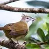 白喉冠鹎:体长20-25厘米。头顶红褐色,有长而细的羽冠、红褐色,头侧灰色。上体橄榄绿黄色,飞羽暗褐色,外翈茶黄色,尾下覆羽皮黄色。…全部>>