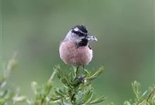 喜马拉雅白眉朱雀:小型鸟类,体长15-17厘米,体重24-35克。额基、眼先深红色,前额和一条长而宽阔的眉纹珠白色沾有粉红色并具丝娟光泽,在暗色的头部极为醒目。头顶至背棕褐或红褐色、具黑褐色羽干纹,…全部>>
