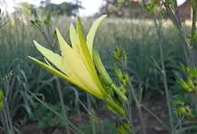 黄花菜 别名金针菜、柠檬萱草等,是阿福花科萱草属的多年生宿根性草本植物。根近肉质,中下部常有纺锤状膨大;叶7~20枚,长50~130cm,宽6~25mm;花葶长短不一,花梗较短,花多朵,…全部>>