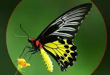 金裳凤蝶是凤蝶科、裳凤蝶属的动物。金裳凤蝶身体呈黑色,头、颈和胸侧有红毛,腹部有黑黄两色相间条纹,雄蝶前翅黑色,具黑天鹅绒光泽,各脉两侧灰白色,后翅金黄色,各室外缘有等腰三角形黑斑1枚,斑内侧有晕,…全部>>