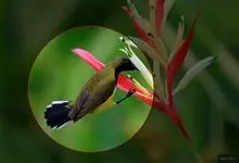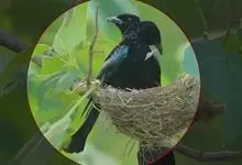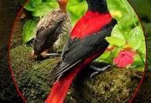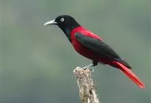朱鹂:中等鸟类,体长23-28厘米。雄鸟绛紫红色,头、上胸及翼黑色。雌鸟上背及背部深灰色,尾覆羽及尾绛紫红色,腹部及下胸白而密布黑色纵纹。与鹊色鹂幼鸟的区别在上背灰色较深,下体白色较少且纵纹较粗。…全部>>