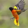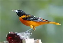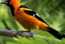 金黄鹂是中型鸣禽。体长24厘米。头全黄色。体羽鲜丽,主要由为黄和黑的颜色组合,雌鸟与幼鸟多具条纹。雄性成鸟眼先、翼及尾基部黑色,其余为鲜亮黄色。雌鸟较暗淡而多绿色。幼鸟偏绿色,下体具细密纵纹。虹膜红…全部>>