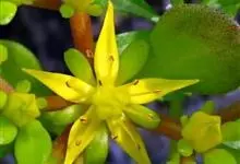 凹叶景天是景天科景天属多年生草本植物。茎细弱,高10-15厘米;叶对生,匙状倒卵形或宽卵形,先端圆微缺,基部渐窄有短距;花序聚伞状顶生,多花,萼片披针形或窄长圆形,先端钝,基部有短距,花瓣为黄色,…全部>>