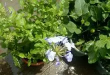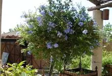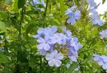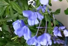 蓝花丹是白花丹科、白花丹属的常绿亚灌木。高约1米;叶薄,呈菱状卵形至狭长卵形;穗状总状花序,总花梗短,花冠淡蓝色至蓝白色,呈倒卵形,苞片呈线状狭长卵形,小苞呈狭卵形或长卵形,…全部>>