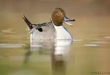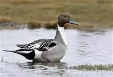针尾鸭,是雁形目鸭科鸭属动物。体长约75厘米的大型戏水鸭,雄鸟头暗褐色,颈侧有白色纹路,向下与胸部白色相连,中央一对尾羽特别长;背灰色,有黑色细纹;翼镜绿色,胸腹白色,尾下覆羽黑色;雌鸟体羽大致为褐色,…全部>>