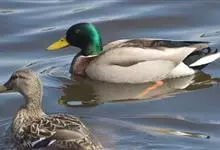 绿头鸭属游禽,大型鸭类。体长47-62厘米,体重大约1千克,外形大小和家鸭相似。雄鸟嘴黄绿色,脚橙黄色,头和颈辉绿色,颈部有一明显的白色领环。上体黑褐色,腰和尾上覆羽黑色,两对中央尾羽亦为黑色,且向…全部>>