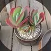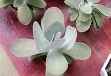 唐印为景天科伽蓝菜属的多年生肉质草本植物。植株中型,株高50厘米,宽20厘米,多分枝;叶片肉质,对生,卵形,全缘,先端钝圆,叶片淡绿色至灰绿色,表面被有厚厚的白粉,光照充足时,叶缘呈红色;圆锥花序,…全部>>