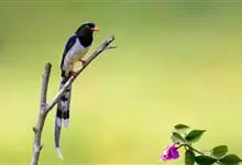 红嘴蓝鹊,别名山鹊、长尾鹊,是鸦科蓝鹊属的一种观赏性较强的大型鸣禽。该物种为体长54~65cm,头、颈、喉和胸黑色,头顶至后颈有一块白色至淡蓝白色或紫灰色块斑,其余上体紫蓝灰色或淡蓝灰褐色。尾长呈凸状,…全部>>