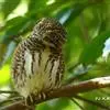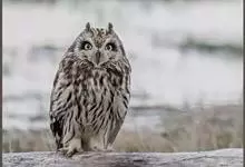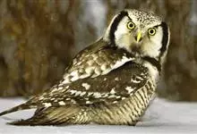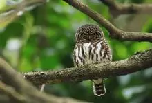 鬼鸮是鸟纲鸱鸮科的鸟类, 全长23-26厘米。共有6个亚种。雌雄羽色相同。额、头顶及枕部褐色,有白色椭圆斑。面盘白色外侧羽缘褐色。胸以下为白色,有褐色纵斑。翅褐色。…全部>>