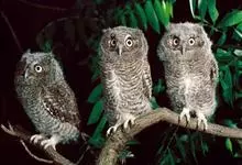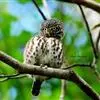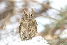 鬼鸮是鸟纲鸱鸮科的鸟类, 全长23-26厘米。共有6个亚种。雌雄羽色相同。额、头顶及枕部褐色,有白色椭圆斑。面盘白色外侧羽缘褐色。胸以下为白色,有褐色纵斑。翅褐色。…全部>>