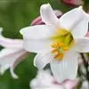 麝香百合:在中国台湾亦称铁炮百合。鳞茎球形或近球形,高2.5-5厘米;鳞片白色。茎高45-90厘米,绿色,基部为淡红色。叶散生,披针形或矩圆状披针形,两面无毛。花单生或2-3朵;花喇叭形,白色,筒外…全部>>