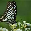 青带凤蝶Graphium sarpedon ,又名青凤蝶,是最普遍的中型凤蝶,飞行速度很快。青带凤蝶的翅膀中央有许多浅蓝色的斑点,很整齐地排列成一条直线。这些斑点由上而下逐渐变大,就像一条青色的带子。全部>>