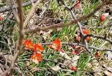 贴梗海棠 Nakai)是蔷薇科、木瓜海棠属植物。落叶灌木,高达2米,枝条直立开展,有刺。叶片卵形至椭圆形,稀长椭圆形,长3-9厘米,宽1.5-5厘米。花先叶开放,3-5朵簇生于二年生老枝上。…全部>>