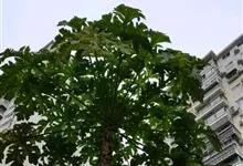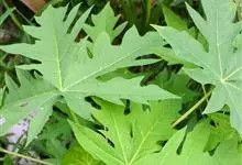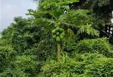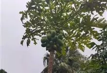 番木瓜,番木瓜科番木瓜属的常绿软木质小乔木,高达10米,具有乳汁;茎不分枝或有时于损伤处分枝;叶大且聚生于茎顶,近似盾形,叶柄中空;花单性或两性,有些品种雄株偶尔生两性花或雌花,…全部>>