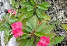 虎刺梅:别称铁海棠,是蔓生灌木植物。茎多分枝,长60-100厘米,直径5-10毫米,具纵棱,密生硬而尖的锥状刺,刺长1-1.5厘米,直径0.5-1.0 毫米,常呈3-5列排列于棱脊上,呈旋转。叶互生…全部>>